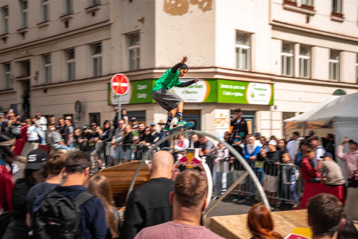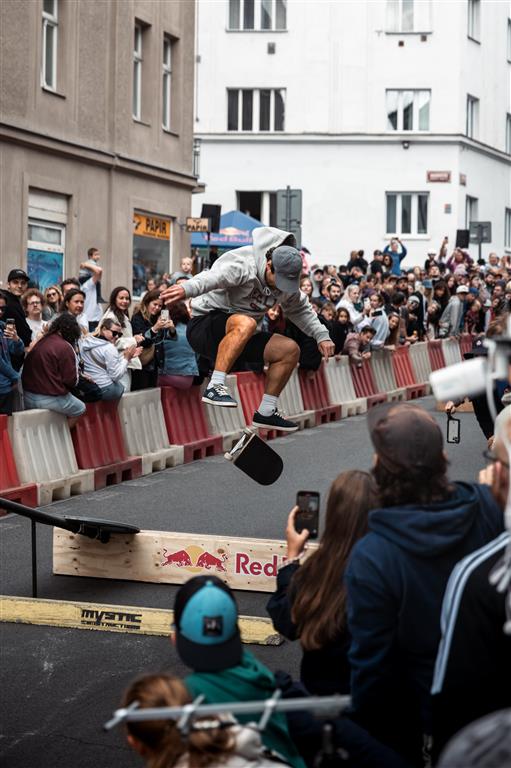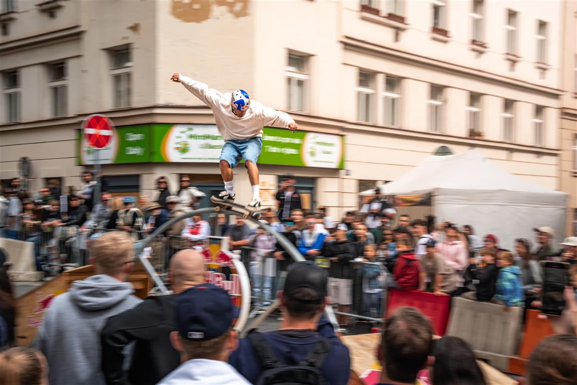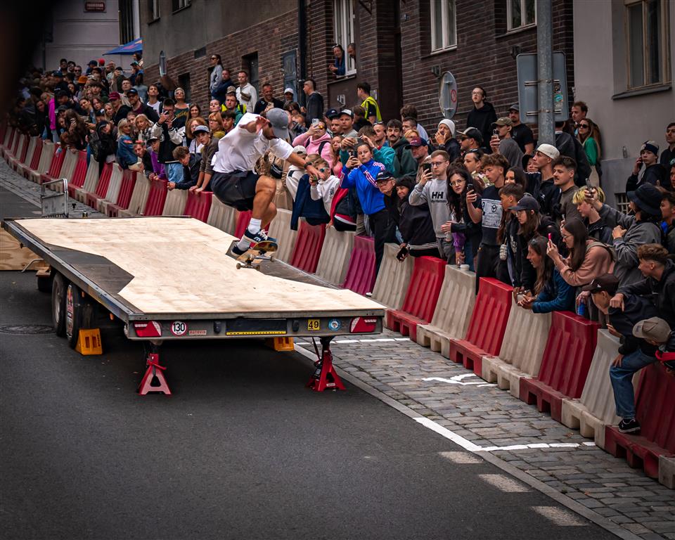 Pražské ulice zažily v sobotu 23. srpna pořádnou dávku adrenalinu. Do centra hlavního města se totiž sjela špička domácí i světové skateboardingové scény, aby se zúčastnila unikátního závodu Red Bull Steep Street, jejíž autorem je závodník Max Habanec. Přibližně sedm tisíc fanoušků sledovalo, jak se rideři pouštějí po prudké downhillové trati okořeněné speciálně připravenými překážkami. Ty mohli jezdci využít jakýmkoliv kreativním způsobem, což slibovalo show plnou rychlosti, triků a originality.